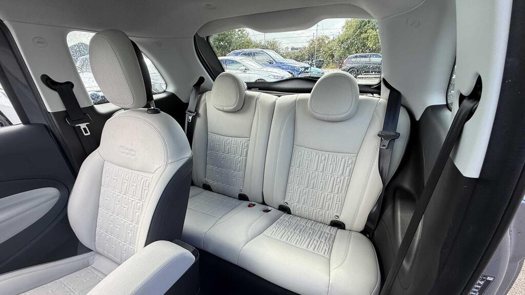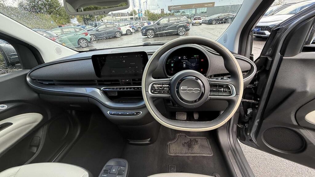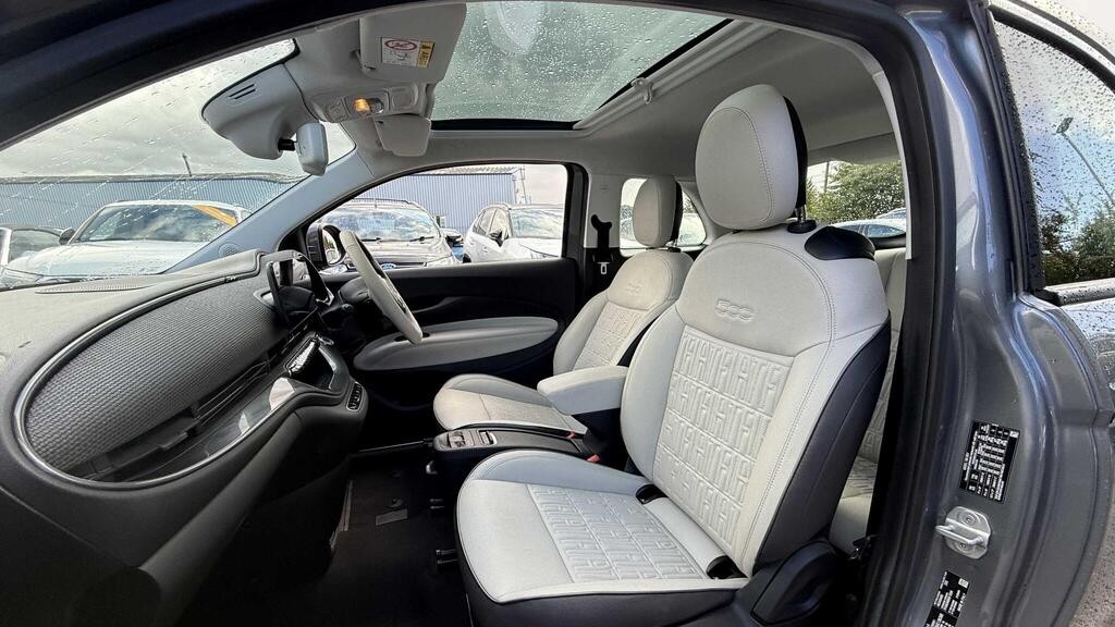 The Fiat 500e La Prima is equipped with a host of desirable features that enhance its appeal. The Fiat Co-Driver Pack includes Blind Spot Assistance, Adaptive Cruise Control, and a 360 Degree Camera with rear parking sensors, making driving and parking easier. For comfort, the Winter Pack adds heated seats, and the Panoramic Sunroof brings an airy feel to the cabin. Connectivity is seamless with Wireless Apple CarPlay and Android Auto. These features collectively demonstrate how this Fiat 500e La Prima offers a superior experience compared to other vehicles in its class.